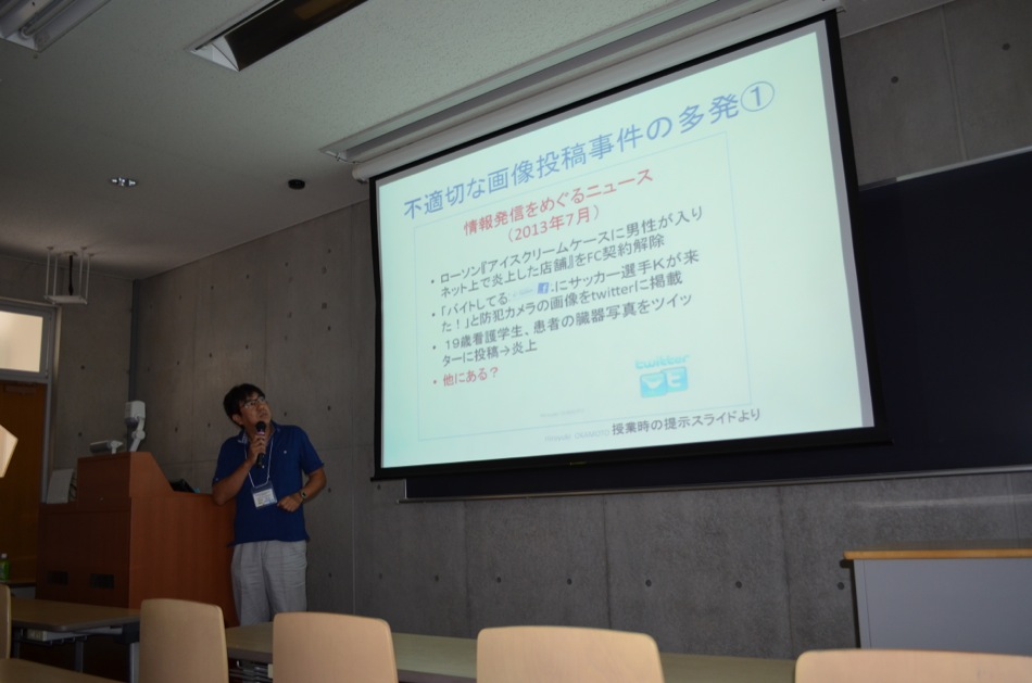 昨年度夏に頻発した若者によるSNSへの不適切な画像投稿問題を取り上げ何故そのようなことが起こるのかを考えさせた授業実践の発表